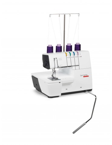 La bernette 62 AIRLOCK est la machine à point enveloppant de la série b60.L'enfileur à air automatique facilite l'enfilage du fil du boucleur.La machine dispose de 4 points enveloppants et de 3 points de chaînette et peut être utilisée pour d'innombrables applications et pour coudre parfaitement différents types de tissus, particulièrement les tissus extensibles.Le pied-de-biche peut être abaissé et relevé temporairement avec le levier de genou, laissant les deux mains libres de guider le tissu.La table rallonge et l'insert pour point enveloppant coordonné augmentent la zone de couture et offrent suffisamment d'espace pour les grands ouvrages.Grâce aux 5 LEDs, la grande zone de travail est bien éclairée.- Enfileur à air automatique pour le fil du boucleur- Bras libre- Guide d'enfilage du fil avec code couleur- Relâchement de la tension du fil lorsque le pied-de-biche est relevé- Longueur de point réglable pendant la piqûre- Accessoires sous le couvercle du boucleur- Éclairage lumineux pour la couture- Commutateur de sécurité activé lorsque le couvercle est ouvert- Système mains libres (FHS) avec levier de genou