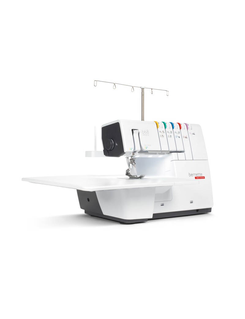 La bernette 68 est une machine combinée avec des points de surjet, des points enveloppants, des points de chaînette et des points combinés. Ses nombreux atouts incluent un enfileur à air pour faciliter l'enfilage des fils du boucleur, un espace de 130 mm à droite de l'aiguille pour la couture confortable de grands ouvrages (en particulier pour la couture au point enveloppant), un bras libre intégré pour la piqûre de manchettes, un éclairage lumineux de la zone de couture avec 5 LEDs et un levier de genou pour abaisser et relever temporairement le pied-de-biche. Avec 31 points différents, tous vous besoins seront satisfaits.